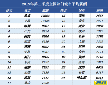 據前程無憂人力資源調研中心數據顯示,2019年第三季度27個熱門城市當中,有13個城市薪酬較第二季度略有下降,其中東莞薪酬降幅相對明顯,東莞 “出口依存度”較高,受貿易戰(zhàn)影響,工業(yè)生產有所回落,進出口增速放緩,經濟受到一定影響。